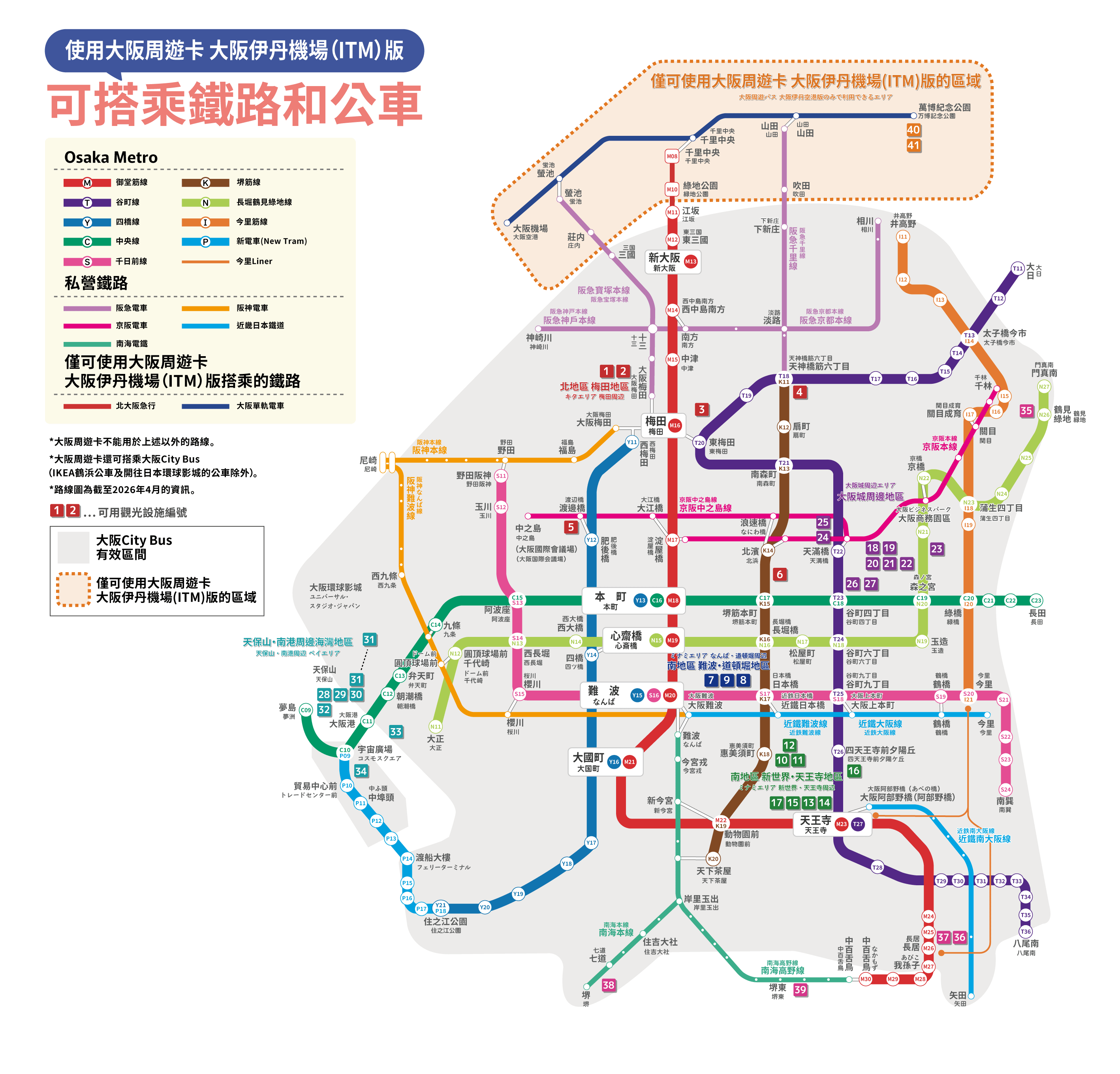 可使用大阪周遊卡的鐵路和公車 大阪伊丹機場 (ITM) 版